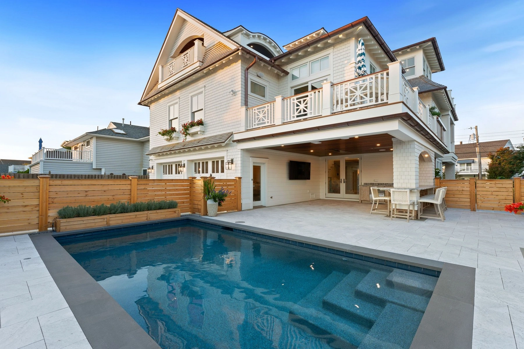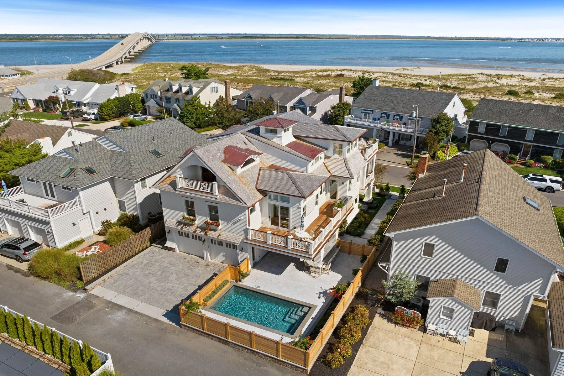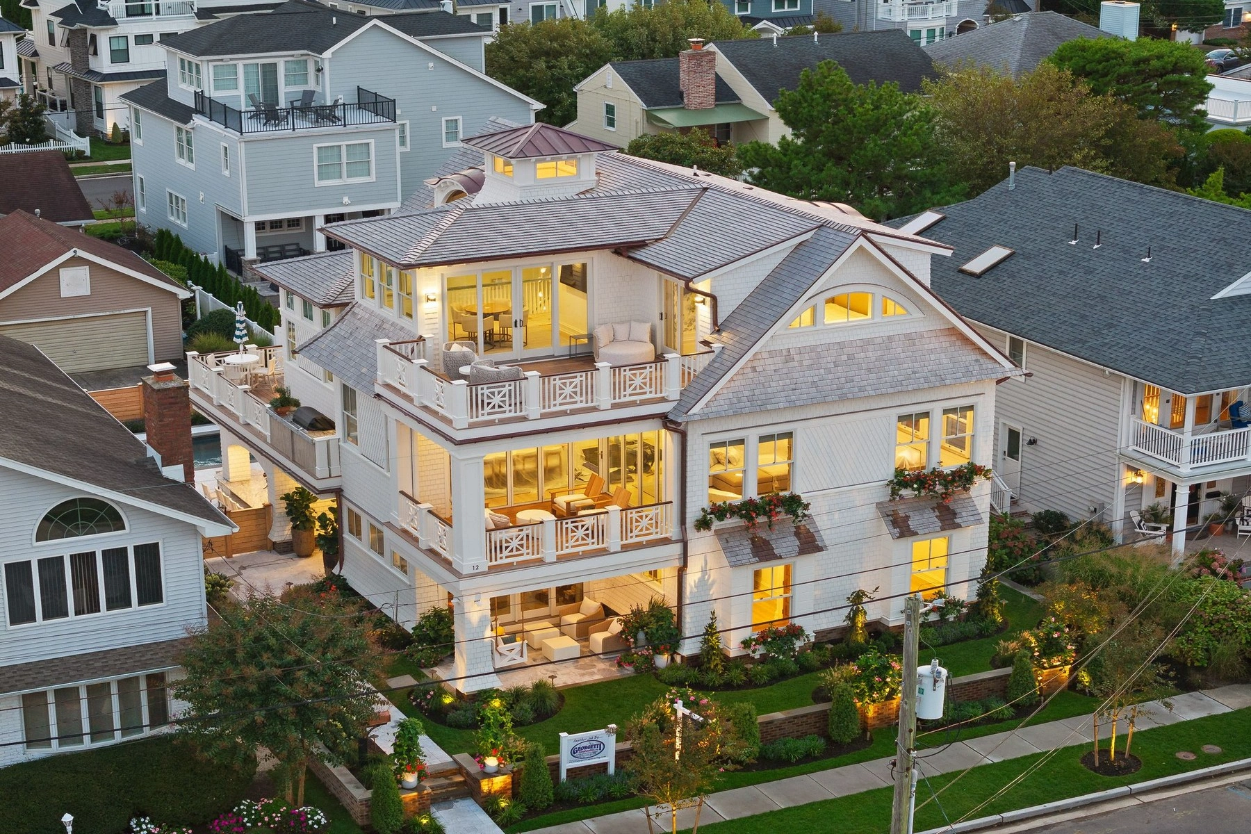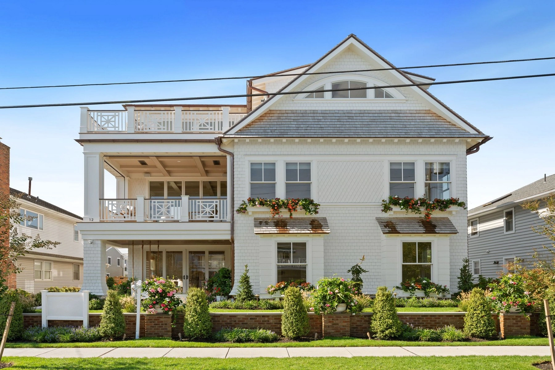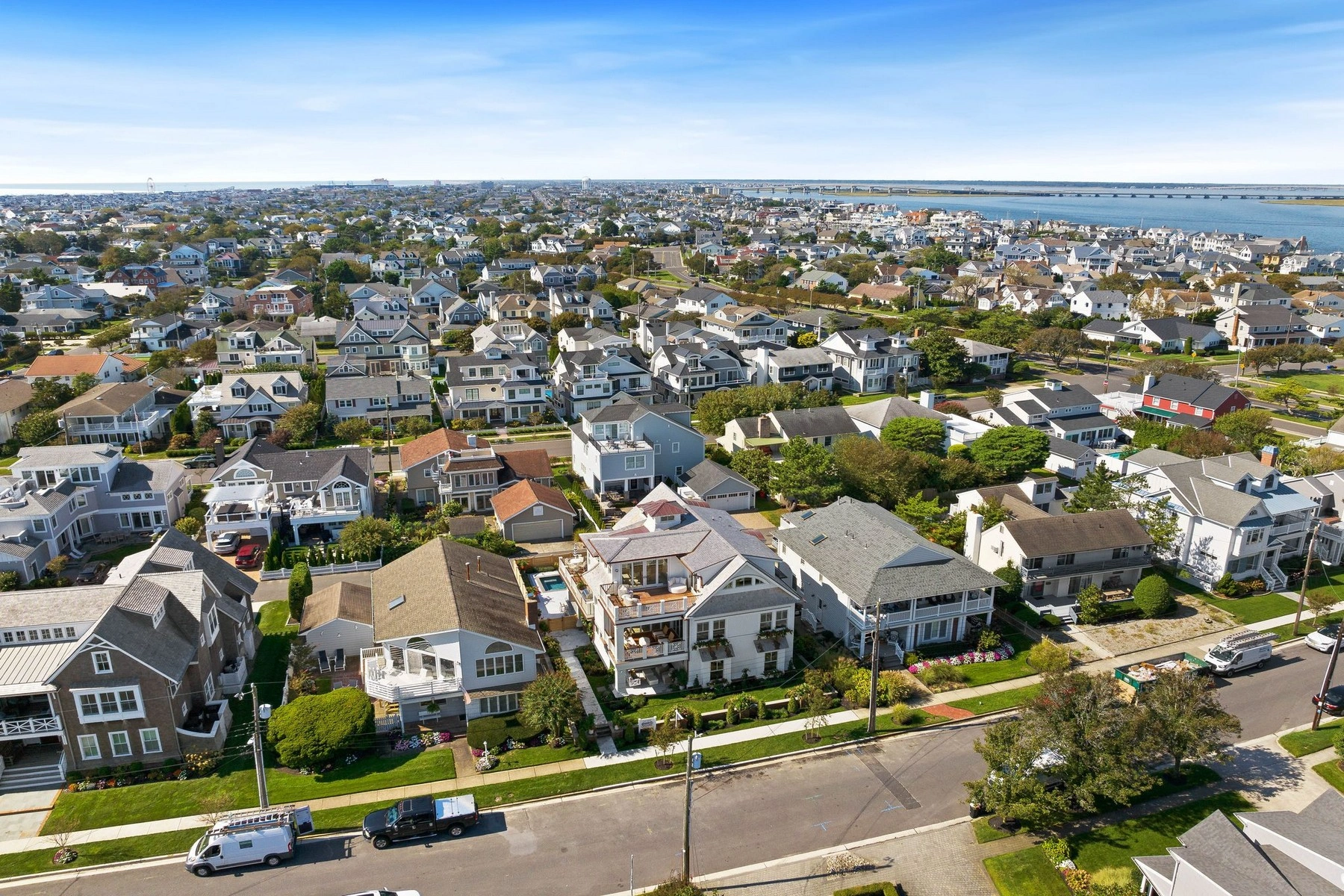 Welcome to Casa al Mare, a bespoke single-family coastal sanctuary in Ocean City’s prestigious Gardens neighborhood custom built by Georgetti Construction. Positioned directly across the street from the beach, this residence captures sweeping ocean views while showcasing architectural pedigree, cutting-edge technology, and timeless Shore style. Masterfully built, the home sits on a 59’ × 92’ lot at one of the highest elevations in Ocean City, offering nearly 4,000 sq. ft. of finished living space with multiple outdoor entertaining areas across three levels, 5 bedrooms, 6.5 bathrooms, and the convenience of an elevator. As you approach the entrance, a custom mahogany front door opens to a grand foyer with a sweeping staircase, complete with a custom stair runner and designer lighting—setting the tone for the home’s sophisticated design. The first level also includes a separate living area, two ensuite bedrooms, and a cabana bath. On the main level, the open great room impresses with a living and dining area flowing into a gourmet kitchen with Bluebell cabinetry, a Macchia Vecchia marble-wrapped hood and waterfall island, and a SubZero/Wolf appliance package. Expansive NanaWall glass doors create seamless indoor-outdoor living and frame ocean views, with Bromic heaters allowing year-round enjoyment. The dining area features custom cabinetry and an oyster accent wall that extends to a balcony with a built-in grill overlooking the rear yard. This level also offers a powder room, a laundry room with sink and custom cabinetry, and two ensuite bedrooms, including a custom bunk room. The top floor is dedicated to the private primary suite, offering a serene seating area and bedroom—both opening to a balcony with panoramic water views. The suite includes a custom walk-in closet and spa-style bathroom with dual vanities, a makeup counter, soaking tub, glass-enclosed rain shower, and heated toilet. Completing the retreat is a screened sleeping porch designed for breezy summer nights. High-end finishes include Andersen A-Series windows, white oak wide plank hardwood floors, radiant heating throughout the ground level and primary bathroom, walk-in closets, custom-tiled baths, and a holographic fireplace. Smart home integration features Lutron, Control4, Sonos, and full interior/exterior security. The exterior showcases Maibec cedar siding, an Alaskan red cedar roof with copper accents, ½ round copper gutters, Marmiro stone hardscaping, and lush landscaping with custom flower boxes, planters, and lighting. Outdoor living is elevated with a bar and entertaining area featuring Naturekast cabinetry, Bromic heaters, and an outdoor TV, all overlooking the 10’ × 20’ heated gunite saltwater pool with fountains. The two-car garage is outfitted with a sink, washer/dryer, ice maker, vehicle charging station, and custom storage—ideal for a luxury beach lifestyle. Casa al Mare is more than a home—it’s a statement of design and craftsmanship in one of Ocean City’s most sought-after neighborhoods. Offered as new construction, designed and furnished by Associated Design Studio for turnkey luxury living at the beach.