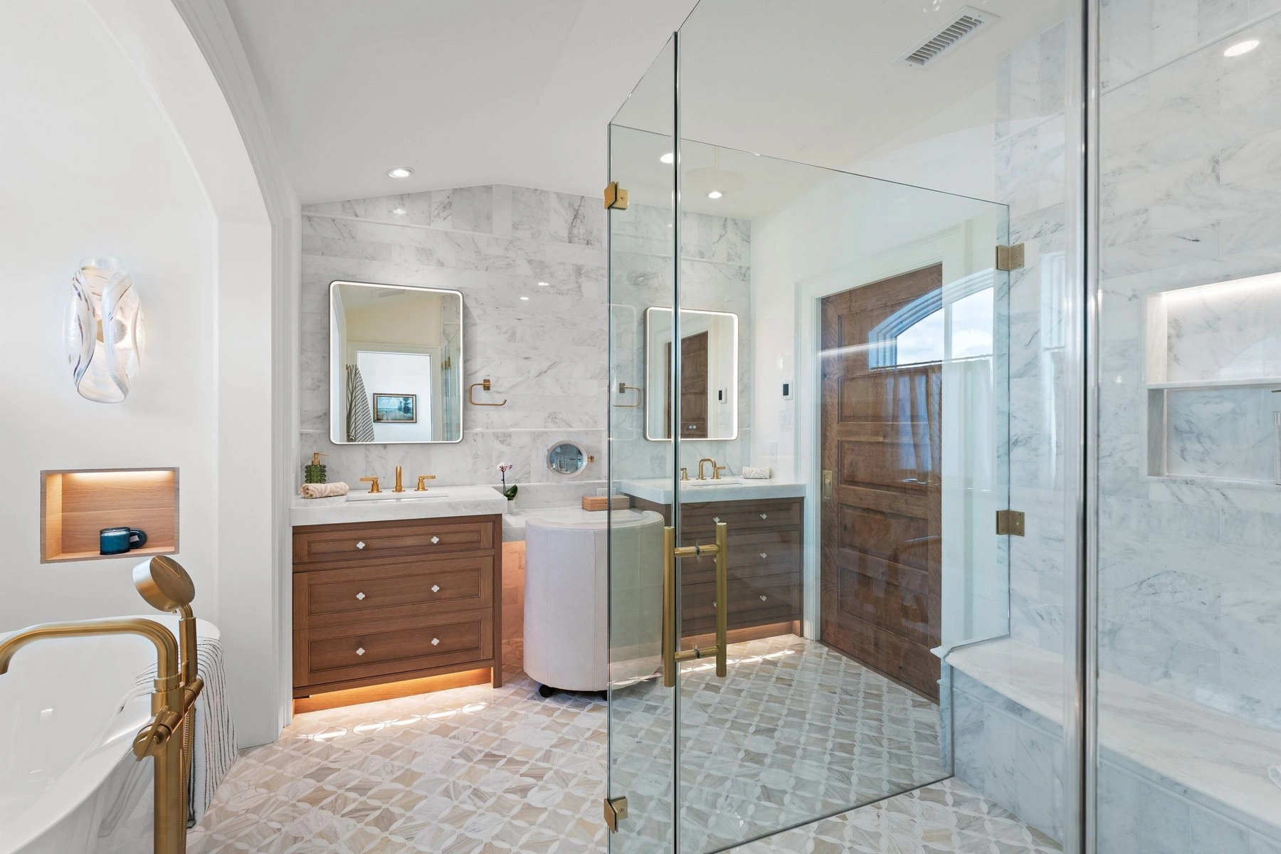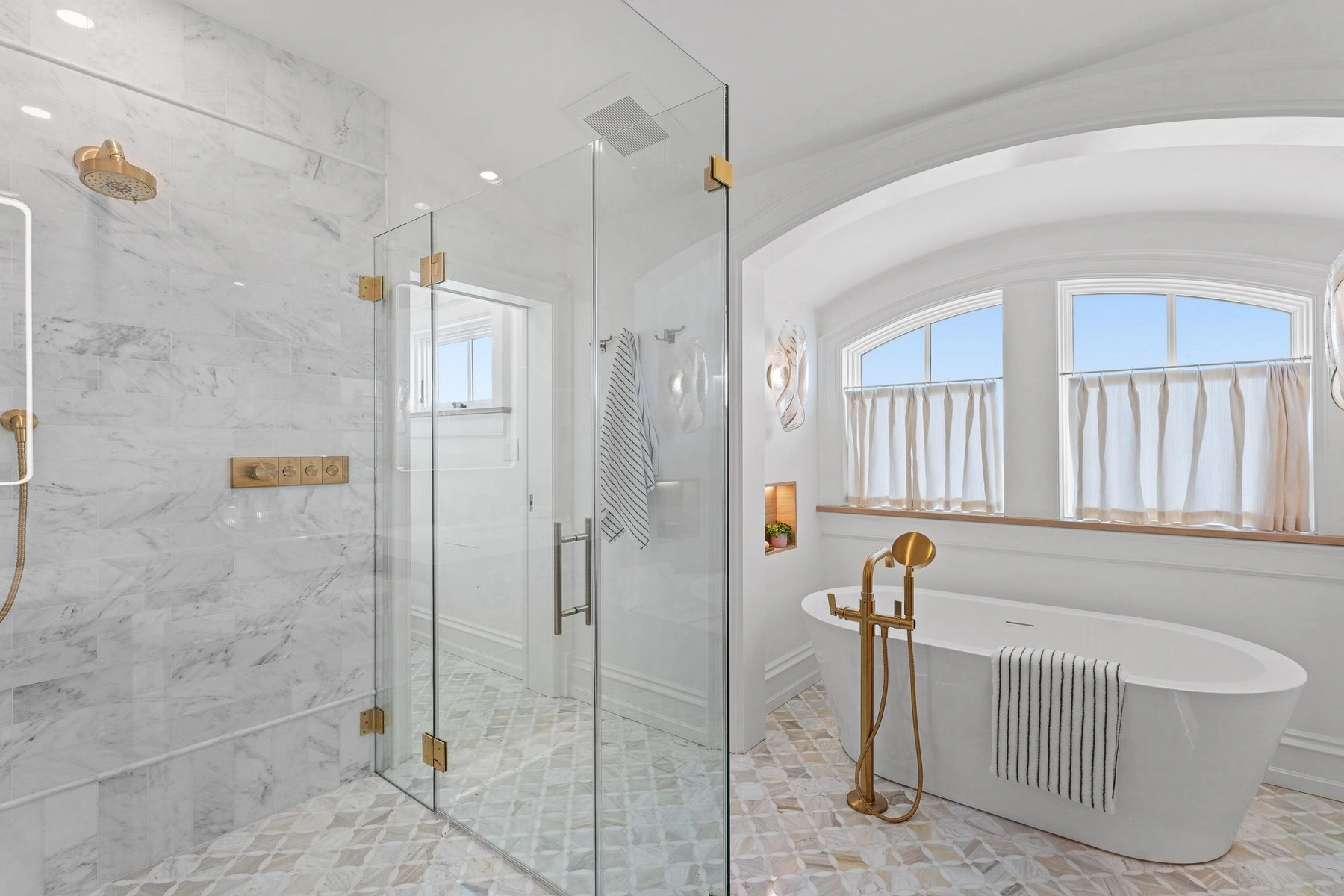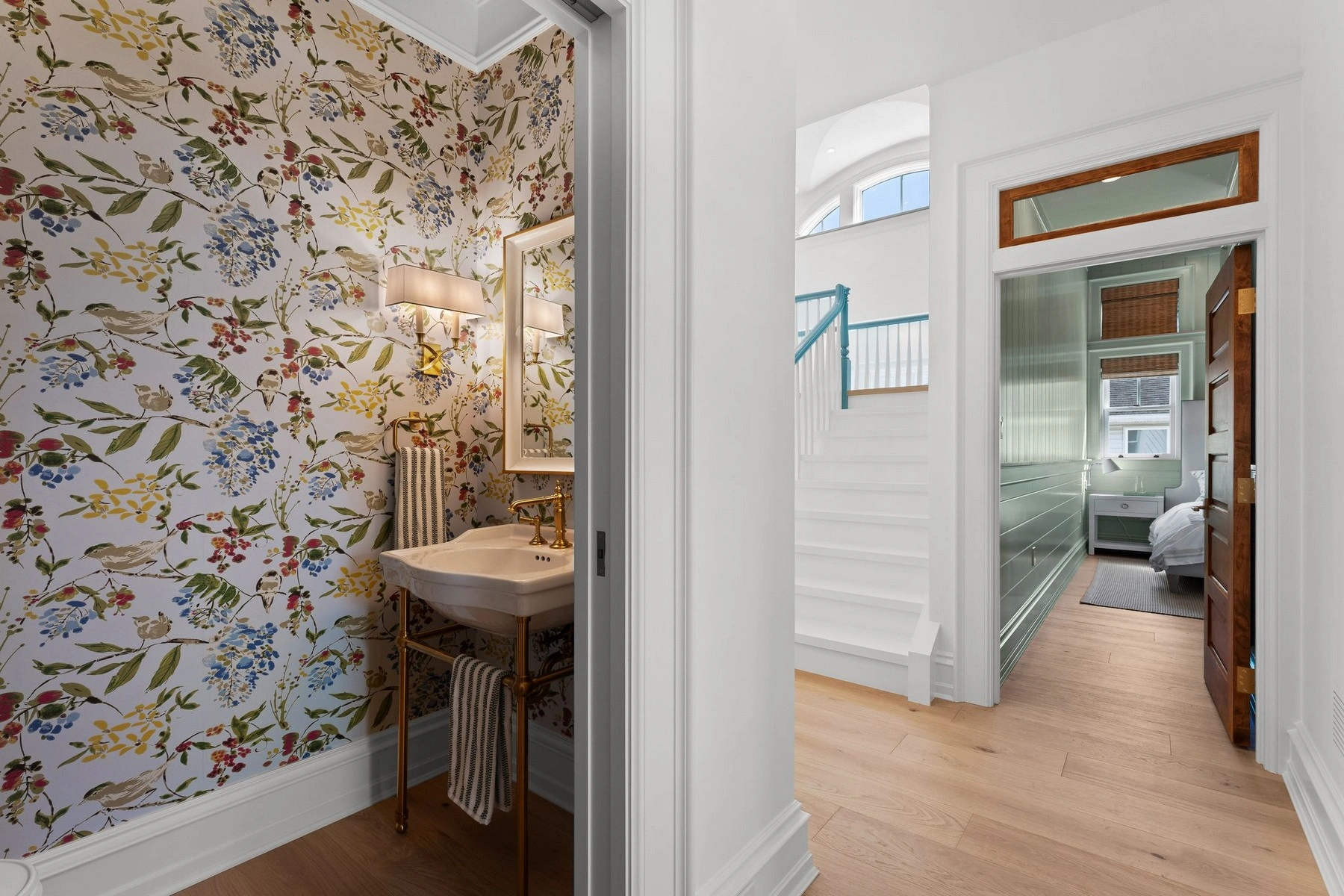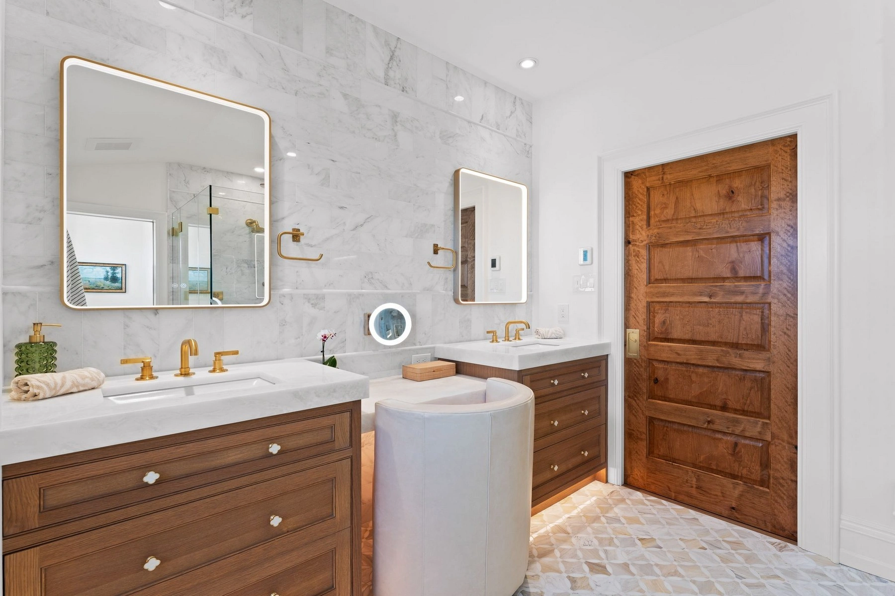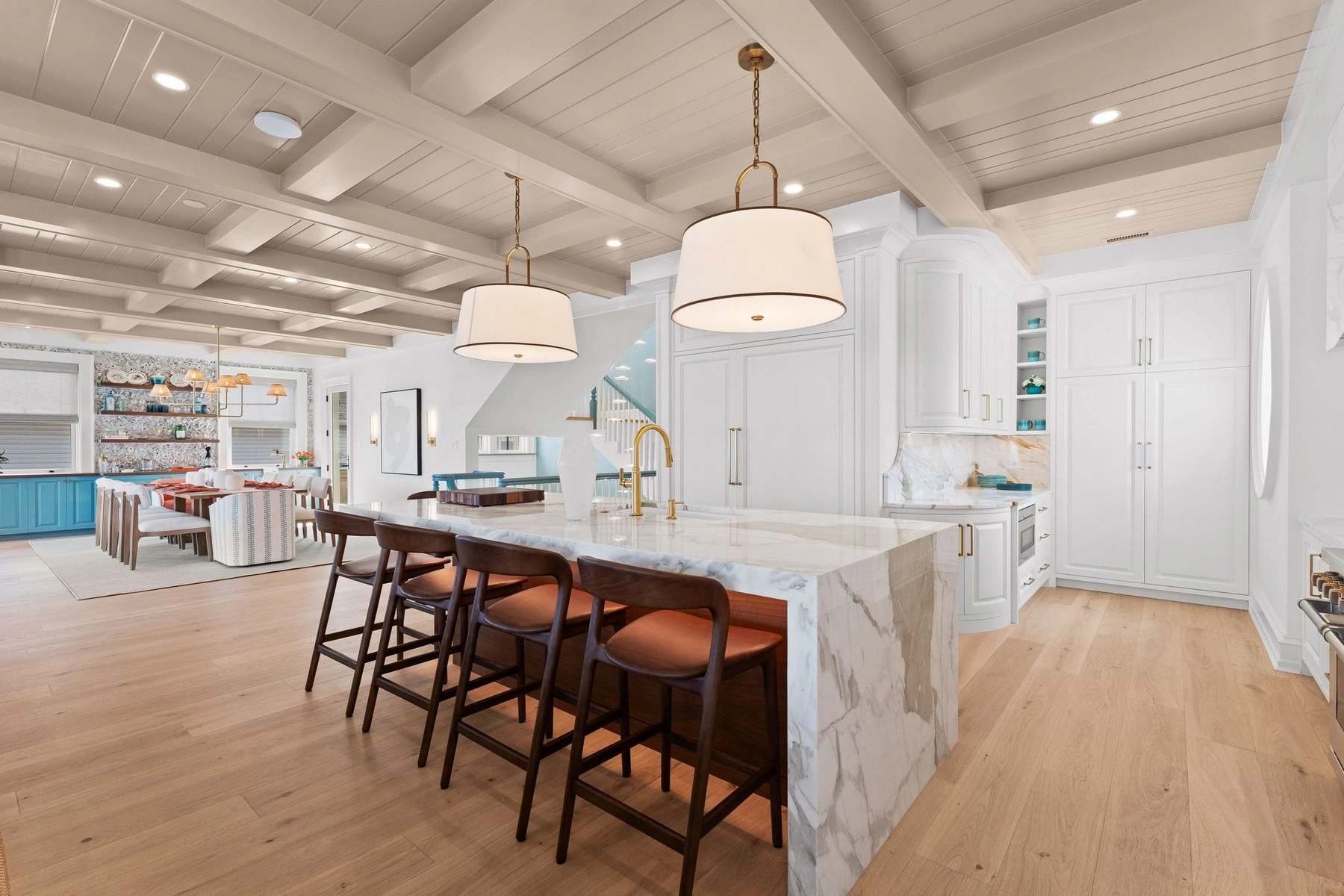 Welcome to Casa al Mare, a bespoke single-family coastal sanctuary in Ocean City’s prestigious Gardens neighborhood custom built by Georgetti Construction. Positioned directly across the street from the beach, this residence captures sweeping ocean views while showcasing architectural pedigree, cutting-edge technology, and timeless Shore style. Masterfully built, the home sits on a 59’ × 92’ lot at one of the highest elevations in Ocean City, offering nearly 4,000 sq. ft. of finished living space with multiple outdoor entertaining areas across three levels, 5 bedrooms, 6.5 bathrooms, and the convenience of an elevator. As you approach the entrance, a custom mahogany front door opens to a grand foyer with a sweeping staircase, complete with a custom stair runner and designer lighting—setting the tone for the home’s sophisticated design. The first level also includes a separate living area, two ensuite bedrooms, and a cabana bath. On the main level, the open great room impresses with a living and dining area flowing into a gourmet kitchen with Bluebell cabinetry, a Macchia Vecchia marble-wrapped hood and waterfall island, and a SubZero/Wolf appliance package. Expansive NanaWall glass doors create seamless indoor-outdoor living and frame ocean views, with Bromic heaters allowing year-round enjoyment. The dining area features custom cabinetry and an oyster accent wall that extends to a balcony with a built-in grill overlooking the rear yard. This level also offers a powder room, a laundry room with sink and custom cabinetry, and two ensuite bedrooms, including a custom bunk room. The top floor is dedicated to the private primary suite, offering a serene seating area and bedroom—both opening to a balcony with panoramic water views. The suite includes a custom walk-in closet and spa-style bathroom with dual vanities, a makeup counter, soaking tub, glass-enclosed rain shower, and heated toilet. Completing the retreat is a screened sleeping porch designed for breezy summer nights. High-end finishes include Andersen A-Series windows, white oak wide plank hardwood floors, radiant heating throughout the ground level and primary bathroom, walk-in closets, custom-tiled baths, and a holographic fireplace. Smart home integration features Lutron, Control4, Sonos, and full interior/exterior security. The exterior showcases Maibec cedar siding, an Alaskan red cedar roof with copper accents, ½ round copper gutters, Marmiro stone hardscaping, and lush landscaping with custom flower boxes, planters, and lighting. Outdoor living is elevated with a bar and entertaining area featuring Naturekast cabinetry, Bromic heaters, and an outdoor TV, all overlooking the 10’ × 20’ heated gunite saltwater pool with fountains. The two-car garage is outfitted with a sink, washer/dryer, ice maker, vehicle charging station, and custom storage—ideal for a luxury beach lifestyle. Casa al Mare is more than a home—it’s a statement of design and craftsmanship in one of Ocean City’s most sought-after neighborhoods. Offered as new construction, designed and furnished by Associated Design Studio for turnkey luxury living at the beach.