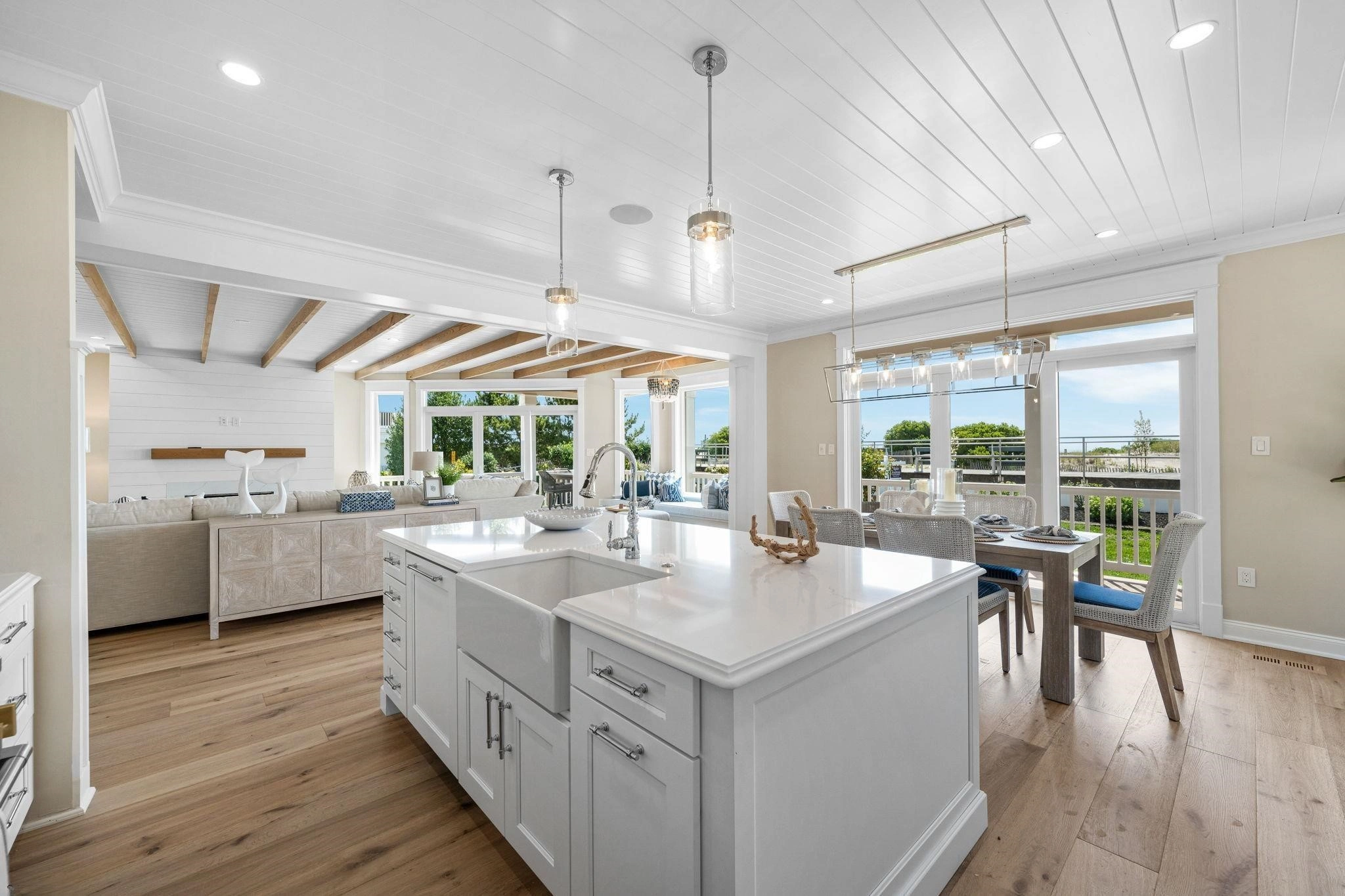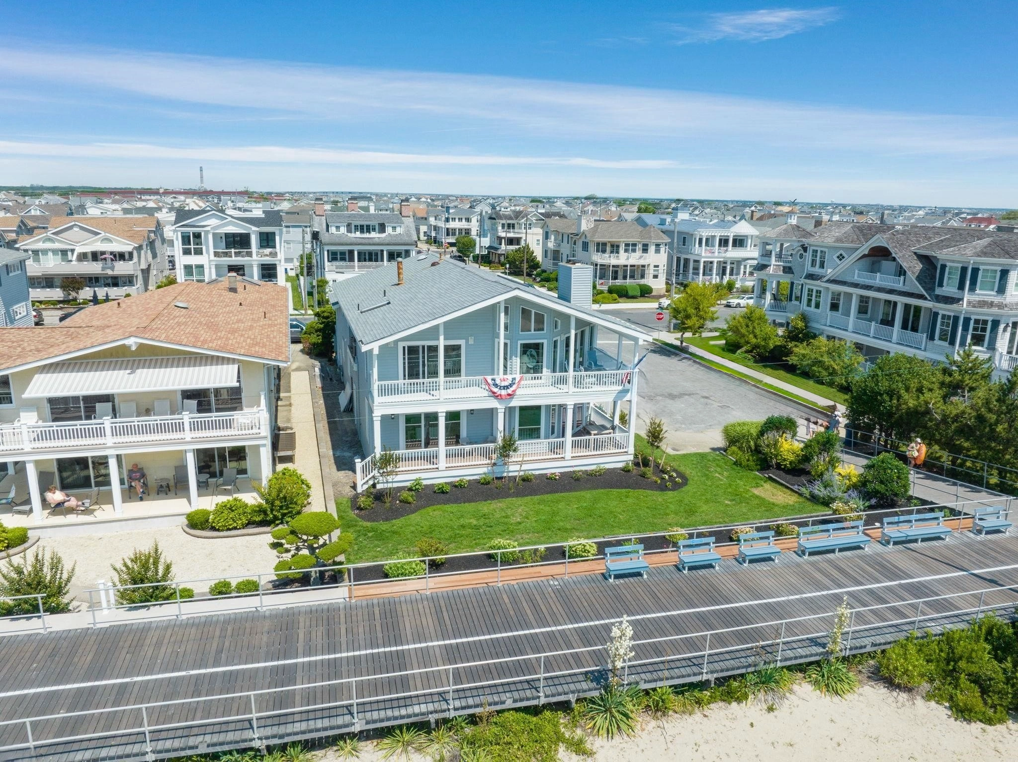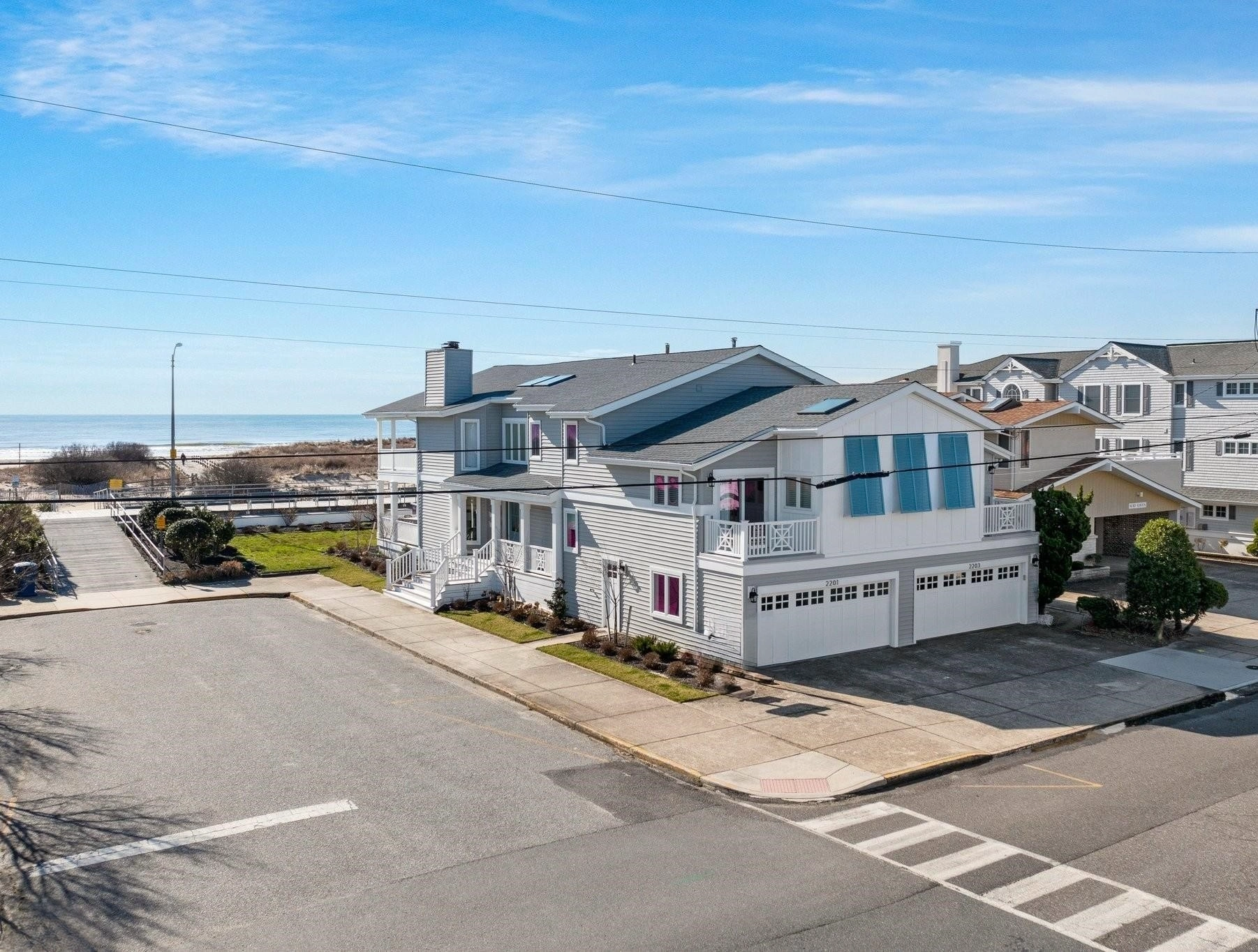 Located in Ocean City, NJ’s coveted Gold Coast neighborhood, 2201 Wesley Avenue is a gorgeous first-floor beach and Boardwalk front vacation rental that offers immediate access to the renowned Ocean City Boardwalk and some of the best beaches around. Featuring 5 bedrooms and 2.5 bathrooms, this beautifully appointed home blends style with comfort. The spacious living area includes a gourmet kitchen, a large dining area, and a generous center island, perfect for everyone to gather and unwind after a fun day on the beach. Enjoy your morning coffee on the lovely, covered porch while taking in the sunrise, or head out for a bike ride along the iconic boardwalk. With off street parking for 2 cars and direct access to the beach and Boardwalk, this property is an ideal rental for up to 13 guests.