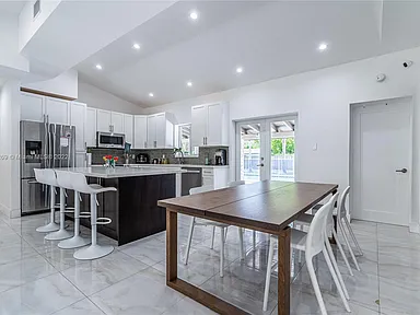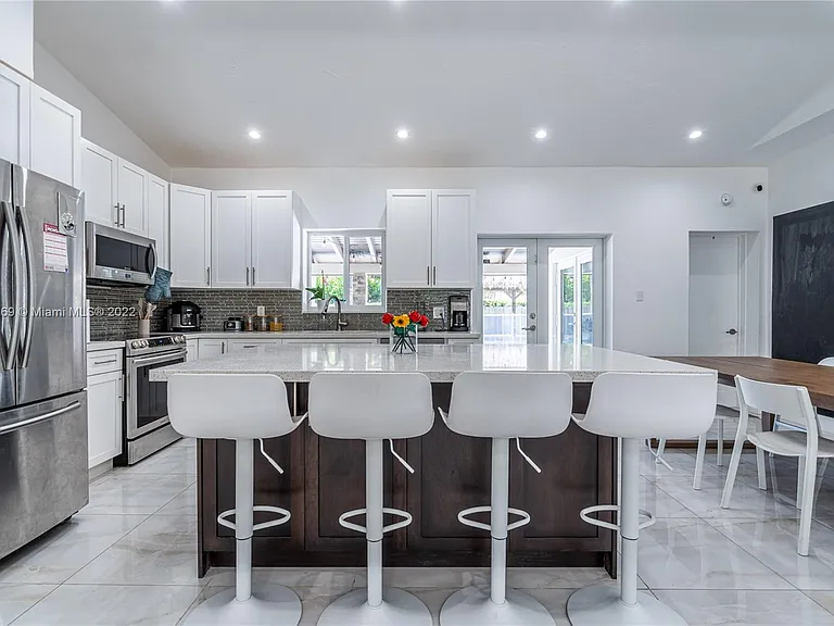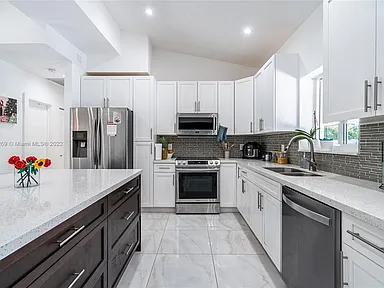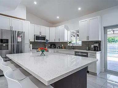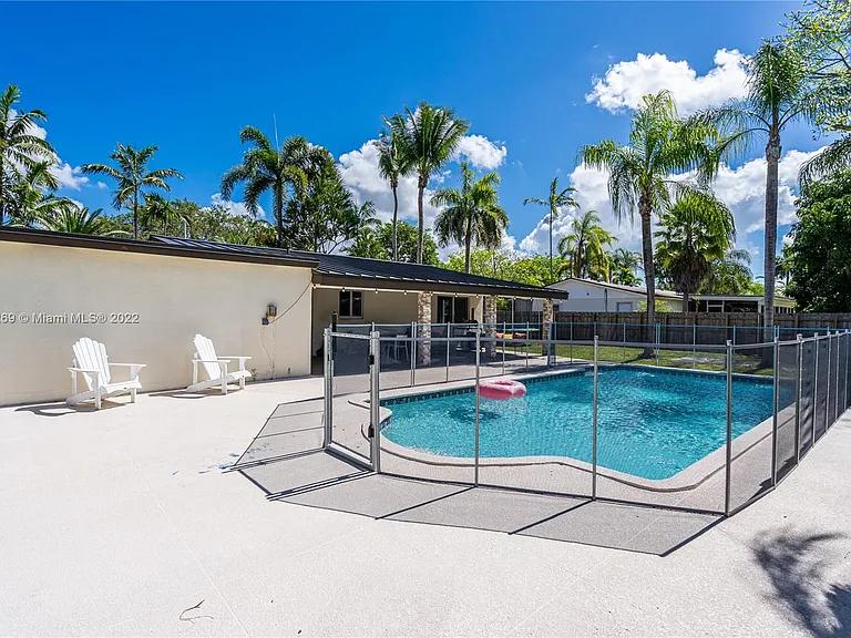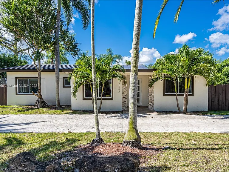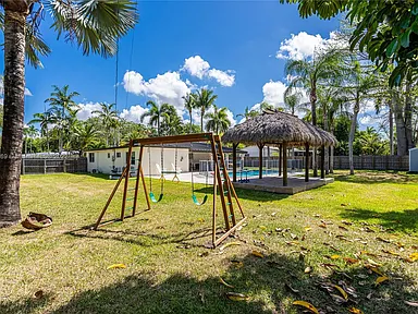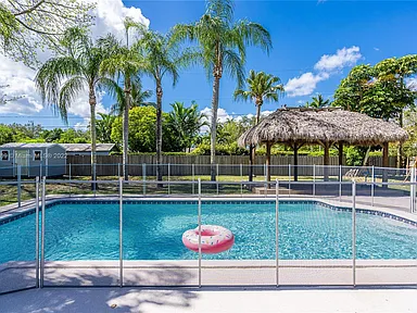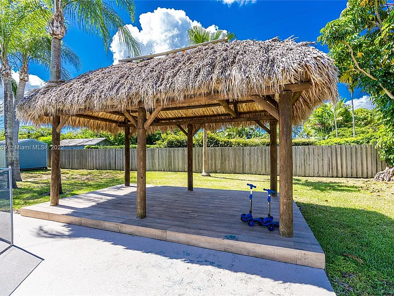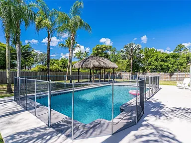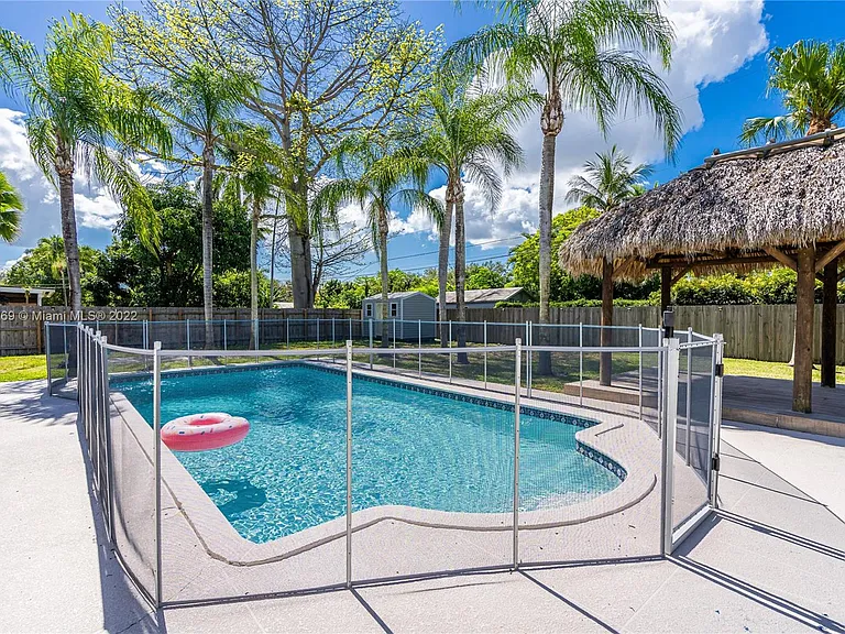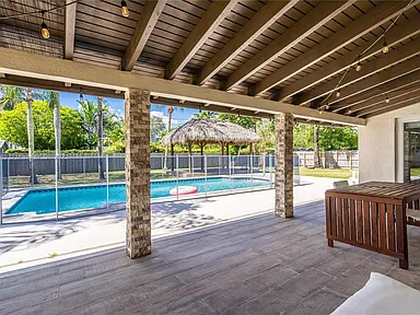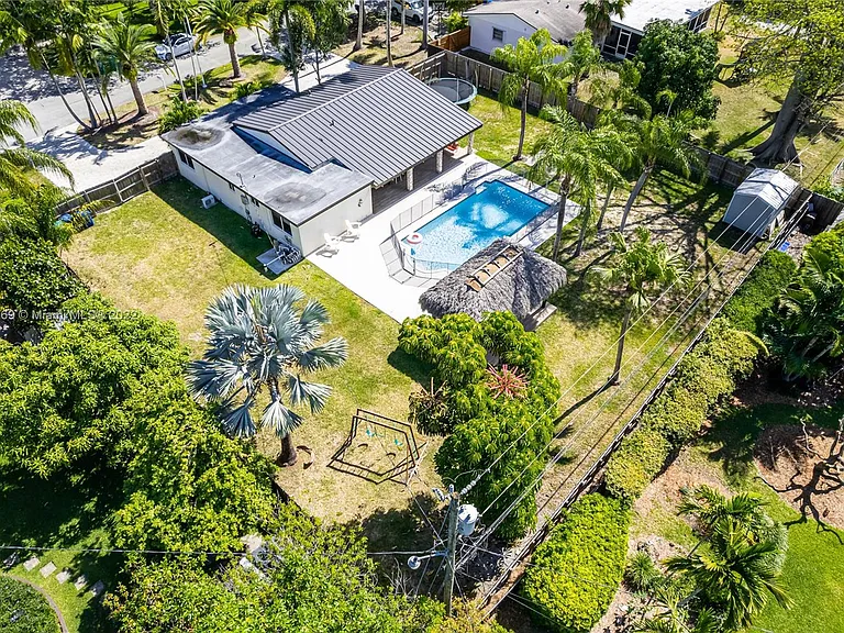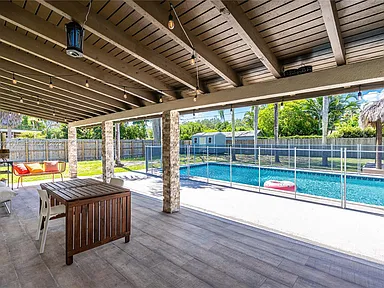 Welcome to this recently renovated 4 bedroom, 2 bath. Enter this stunning home via the travertine paved driveway lined in palms. The home features a new metal roof, all impact windows + slider doors, porcelain tile floors, stainless steel appliances, quartz counter tops, updated bathrooms, Nest thermostat & Arlo doorbell. As you step outside you will immediately feel the ambiance of this over sized lot with plenty of room to relax, get sun or space for the kids to play. Seller plans to leave the trampoline and storage shed. Other improvements to this property are re-thatched tiki hut, diamond brite pool finish, tankless hot water heater, new septic field and new sewer line.